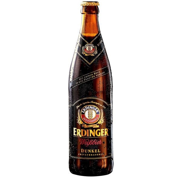 Erdinger Dunkel es un tipo de cerveza de trigo especial estilo Dunkelweizen con un sabor rico y suave. Debe su sabor y su gran cuerpo al lúpulo y la malta oscura utilizada en su producción.