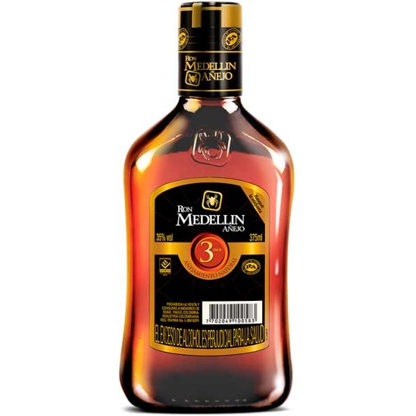 El ron es una bebida obtenida de la fermentación y posterior destilación de la caña de azúcar, luego de este proceso pasa a una etapa de añejamiento que generalmente ocurre en barricas de roble o cerezo durante un año. Es una bebida que data del año 1600 y de origen griego, y en la actualidad es usada en todo el mundo para infinidad de cócteles y preparaciones gastronómicas. El Ron Medellín Añejo tiene aromas a madera y vainilla, textura densa, color dorado claro y su proceso de añejamiento es totalmente natural.