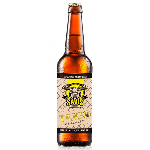 SAVIS TRIGO es una German Hefe-Weizen de color anaranjado, con abundante espuma y aroma a levadura y a pan recién horneado. Notas amargas y dulzonas que recuerdan al plátano.