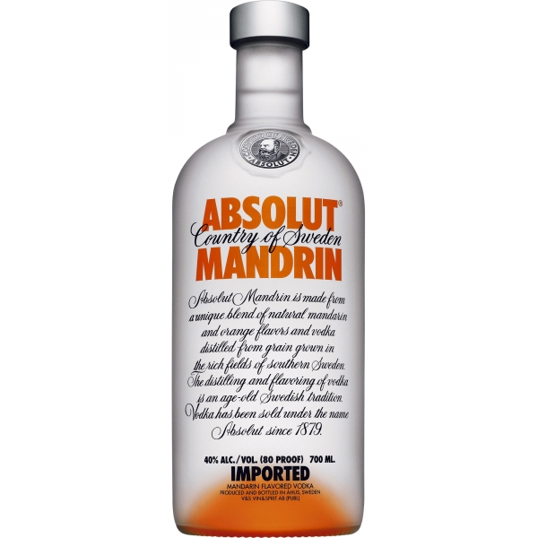 Absolut Mandrin se hace exclusivamente a partir de ingredientes naturales, y a diferencia de la mayoría de otros vodkas de sabores, no contiene azúcar añadido. Es complejo, suave y maduro con sabor a mandarina y el carácter de la naranja mezclados con un toque de la cáscara de naranja.